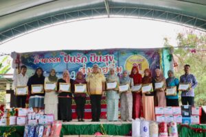 วันที่ 21 ธันวาคม 2566 นางสาวไรวินท์ พลเพชร ผู้อำนวยการ สกร.อำเภอยะรัง มอบหมายให้นายมักตา จะปะกิยา ตำแหน่ง ครู พร้อมด้วยนางสาวอามีเนาะ ประดู่ ครูผู้สอนคนพิการ นำนักศึกษาพิการจำนวน5 คน และประธานองค์กรนักศึกษา สกร.อำเภอยะรัง เข้าร่วมโครงการส่งเสริมศักยภาพผู้เรียน(นักศึกษาพิการ) กิจกรรม ปันรัก ปันสุข ส่งรอยยิ้ม เพื่อผู้พิการ โดยมีวัตถุประสงค์ เพื่อให้ผู้พิการได้มีโอกาสเข้าถึงสิทธิที่พึ่งจะได้รับและได้รับการดูแลจากสังคมอย่างเท่าเทียมกันและเป็นการสร้างขวัญกำลังใจให้กับเด็กนักศึกษาพิการ ในการนี้ได้รับเกียรติจาก ดร.สุริยา หมาดทิ้ง ศึกษาธิการจังหวัดปัตตานี มาเป็นประธานในพิธีเปิดโครงการดังกล่าว ณ สำนักงาน สกร.จังหวัดปัตตานี