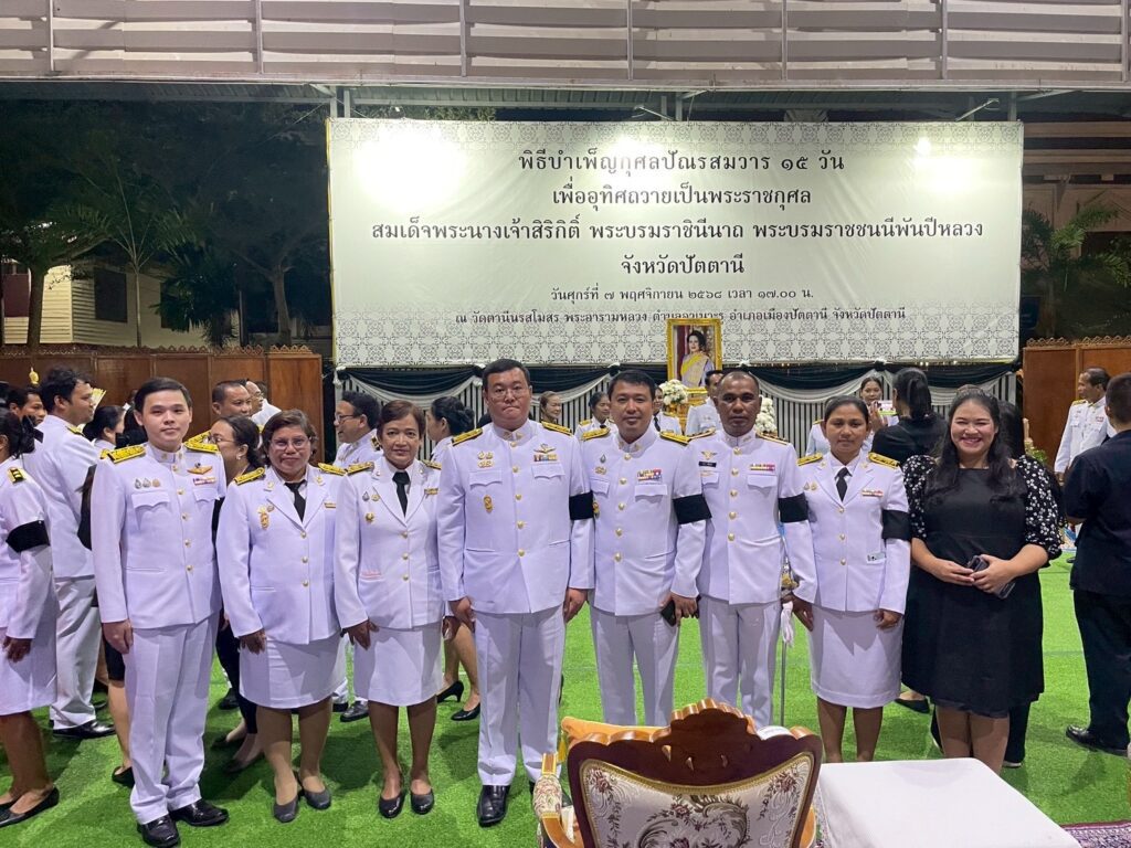 วันที่ 7 พฤศจิกายน 2568 นางสาวไรวินท์ พลเพชร ผู้อำนวยการ สกร.ระดับอำเภอยะรัง มอบหมายให้ นายธนวัฒน์ รัตนเดโช ครูชำนาญการเข้าร่วมพิธีบำเพ็ญกุศลปัณรสมวาร 15 วัน เพื่ออุทิศถวายเป็นพระราชกุศลแด่สมเด็จพระนางเจ้าสิริกิติ์ พระบรมราชินีนาถ พระบรมราชชนนีพันปีหลวง โดยมีนายสนั่น สนธิเมือง รองผู้ว่าราชการจังหวัดปัตตานี เป็นประธาน ณ วัดตานีนรสโมสร พระอารามหลวง