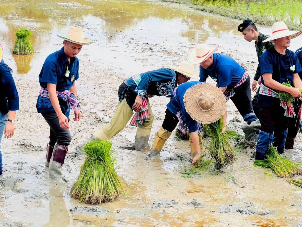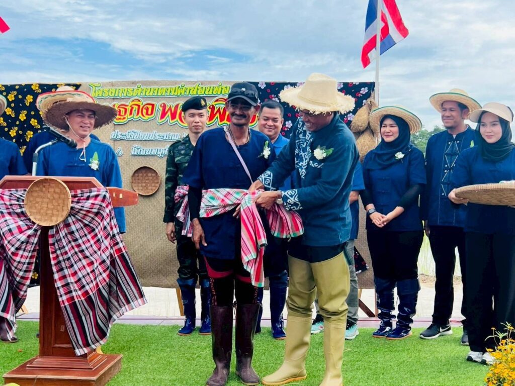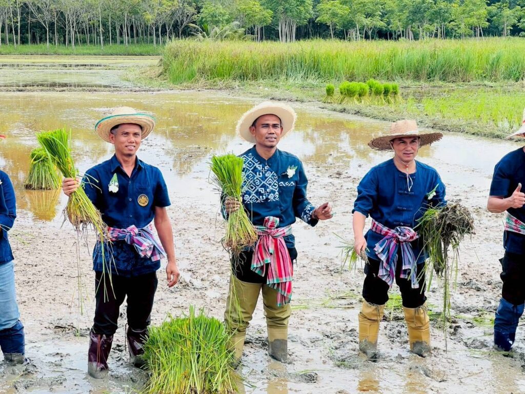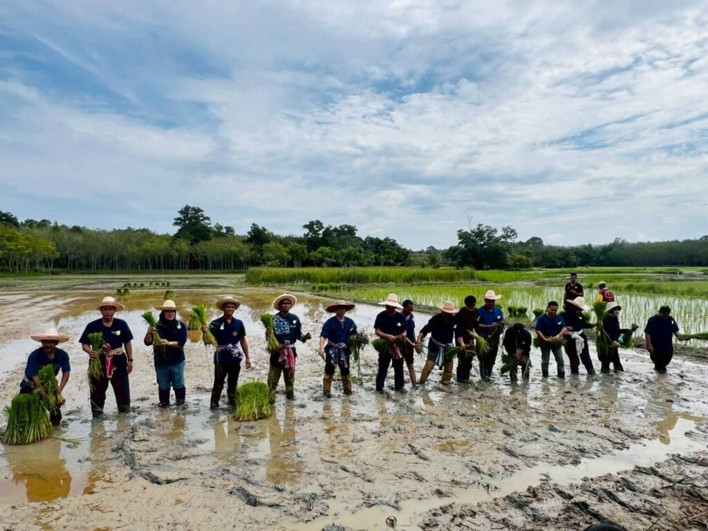 วันที่ 6 พศจิกายน 2568นางสาวไรวินท์ พลเพชร ผู้อำนวยการ สกร.ระดับอำเภอยะรัง มอบหมายให้นายมักตา จะปะกิยา ครูชำนาญการ นายมะแอ ดามิ ครูอาสาฯประจำศูนย์การเรียนรู้ชุมชนตำบลประจัน และทีมครู ศกร.ระดับตำบลประจัน เข้าร่วมโครงการดำนาตามคำสอนของพ่อเศรษฐกิจพอเพียง โดยมีนายมะยูโซะ กูเตะ นายอำเภอยะรัง ประธานในพิธีเปิดโครงการ และมีนายมะรูดิง ยาโงะ นายก อบต.ประจัน กล่าวรายงาน และมีหัวหน้าส่วนราชการ กำนัน ผู้ใหญ่ บัณฑิตอาสา และประชาชนในพื้นที่ เข้าร่วมกิจกรรมดังกล่าว ณ บ้านกำปงดาแฆ ม.4 ต.ประจัน อ.ยะรัง จ.ปัตตานี
