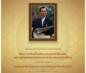 ประชาสัมพันธ์ 5 ธันวาคม 2566 วันคล้ายวันพระบรมราชสมภพ พระบาทสมเด็จพระบรมชนกาธิเบศร มหาภูมิพลอดุลยเดชมหาราช บรมนาถบพิตร Sul Sulwanee 05/12/2023 Post Views: 870 . น้อมรำลึกในพระมหากรุณาธิคุณของ พระบาทสมเด็จพระบรมชนกาธิเบศร มหาภูมิพลอดุลยเดชมหาราช บรมนาถบพิตร ที่พระราชทานต่อประเทศไทยและชาวไทยใต้ร่มพระบารมีในรัชกาลที่ ๙ No Caption About the Author Sul Sulwanee Author Visit Website View All Posts Post navigation Previous: การจัดการเรียนการสอนNext: 7 ธันวาคม วันคล้ายวันประสูติ สมเด็จพระเจ้าลูกเธอ เจ้าฟ้าพัชรกิติยาภา นเรนทิราเทพยวดี กรมหลวงราชสาริณีสิริพัชร มหาวัชรราชธิดา ขอพระองค์ทรงพระเจริญ Related News ประชาสัมพันธ์ “เริ่มวันแรกของเดือนรอมฎอนด้วยการช่วยเหลือเด็กกำพร้ากับกองทุน RUN FOR YATEEM “ admin 23/02/2026 ประชาสัมพันธ์ ประมวลภาพกิจกรรมทั้งหมด มอบกระเช้าของขวัญและขอรับพรเนื่องในโอกาสวาระดิถีขึ้นปีใหม่ 2569 admin 10/01/2026 ประกันคุณภาพการศึกษา ประชาสัมพันธ์ ประมวลภาพกิจกรรมทั้งหมด สกร.อำเภอยะรัง ร่วมเป็นวิทยากรเสริมสร้างศักยภาพบุคลากร สกร.อำเภอจะนะ admin 31/12/2025