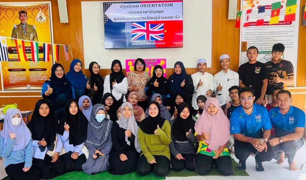 นางสาวไรวินท์ พลเพชร ผู้อำนวยการ สกร.อำเภอยะรัง มอบหมายให้ทีมครู ศกร.ตำบลสะดาวานำนักศึกษา เข้าร่วมการปฐมนิเทศสมาชิกใหม่ของชมรมภาษาอังกฤษ สกร.อำเภอยะรัง และได้มีกิจกรรมการเรียนรู้ภาษาอังกฤษ ดังนี้