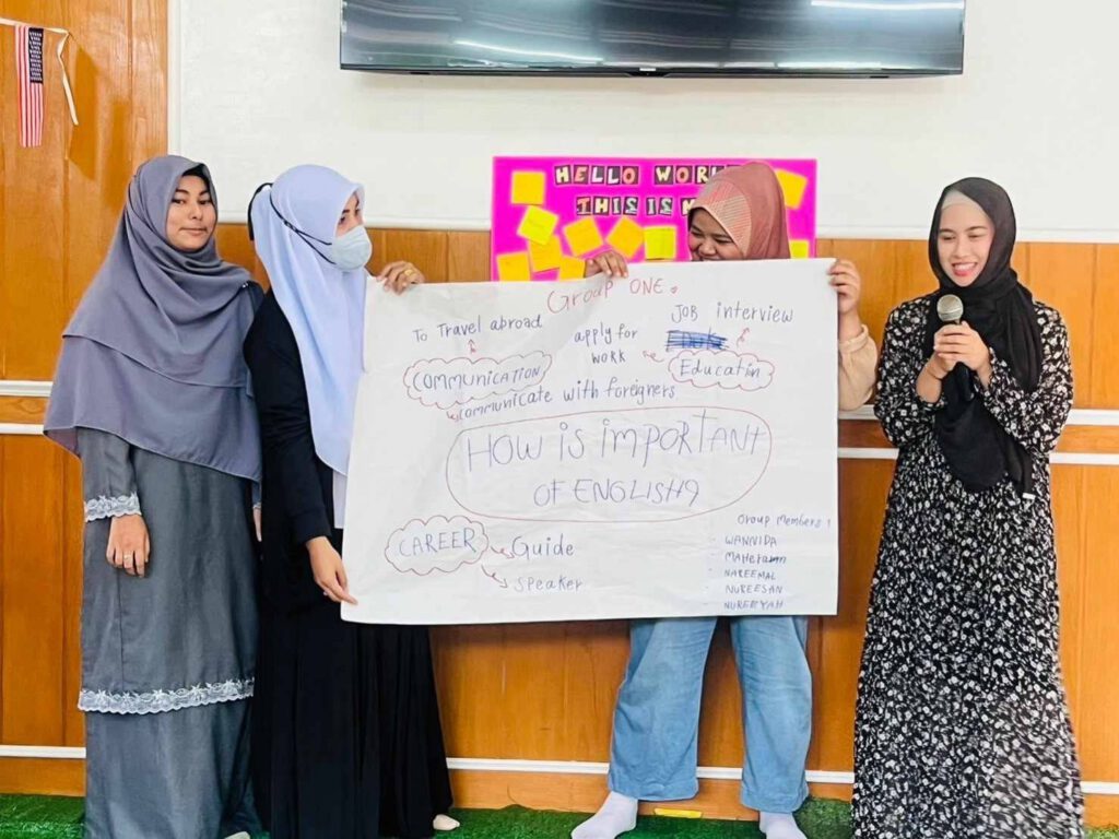 -กิจกรรมระดมความคิด(Brain storming)ในหัวข้อ”How is important of English in21st Century”โดยมีการนำเสนอmind mappingในที่สาธารณะ เป็นภาษาอังกฤษ จัดที่ห้องประชุม สกร.อำเภอยะรัง