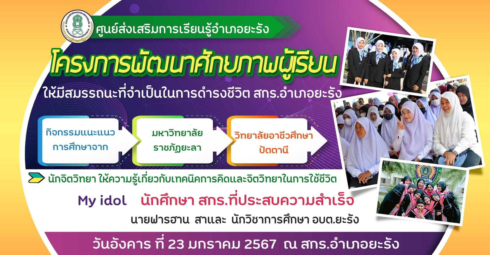 📢 เชิญชวนนักศึกษา สกร.ยะรัง เข้าร่วมโครงการพัฒนาศักยภาพผู้เรียน ให้มีสมรรถนะที่จำเป็นในการดำรงชีวิต